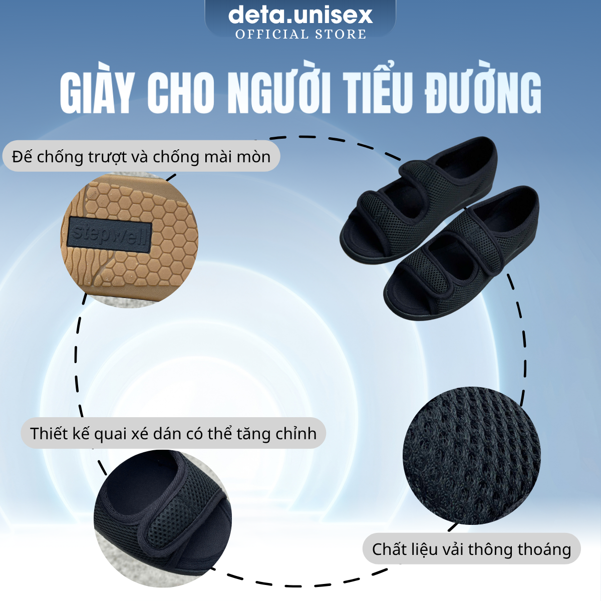 Giày dép dành cho người tiểu đường được thiết kế đặc biệt, êm ái. Giúp hạn chế các trường hợp chà xát gây tổn thương chân dẫn đến các biên chứng nghiêm trọng cắt cụt chi cho người tiểu đường.